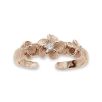 3 Plumeria with CZ Toe Ring, Sterling Silver